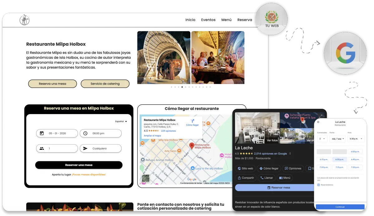 Integración Total: Botones de reserva para Instagram, Facebook y Google Maps.